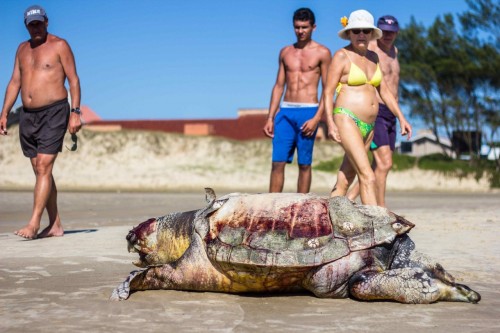 Verão Pampa 2016 – Tartaruga marinha, da espécie cabeçuda, é encontrada morta na praia de Remanso, Xangri-lá. FOTO – Jackson Ciceri