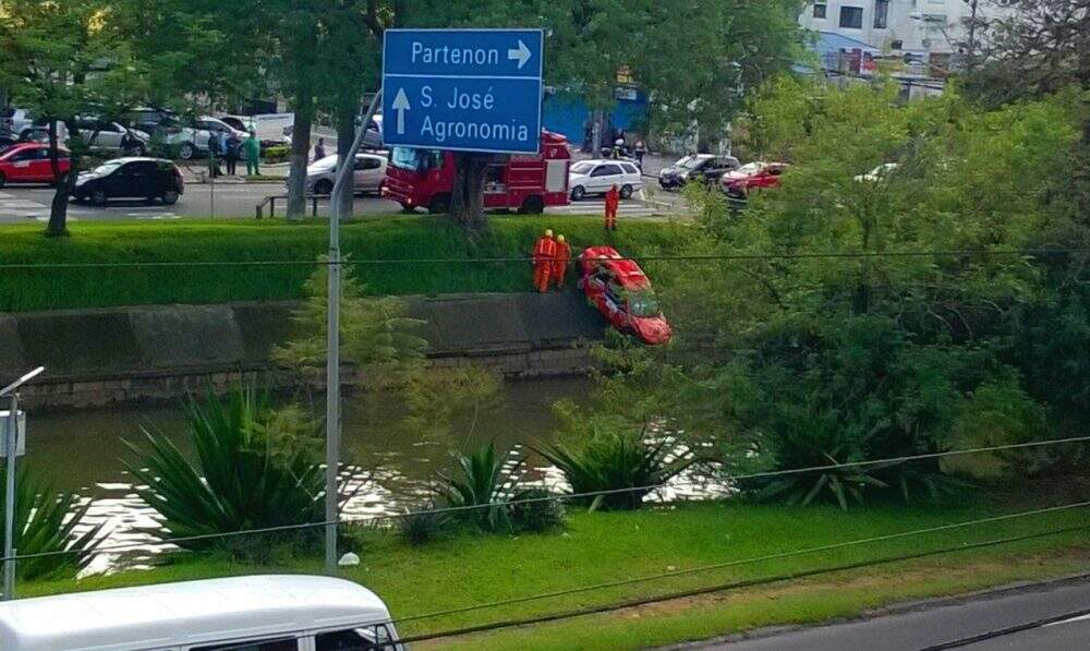 Após colidir com um Fiat Uno, um táxi caiu no talude (rampa) do Arroio Dilúvio, em Porto Alegre, nesta terça-feira (13). O acidente ocorreu na avenida Ipiranga quase na esquina da rua Barão do Amazonas, no sentido bairro-centro, e mobilizou a EPTC (Empresa Pública de Transporte e Circulação) e o Corpo de Bombeiros.