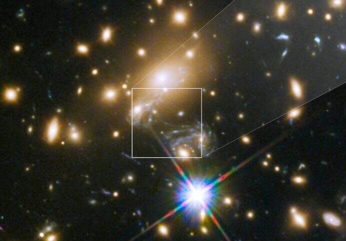 “Normalmente a essas distâncias, galáxias inteiras parecem pequenas manchas, com a luz de milhões de estrelas se misturando”, disse o principal autor Brian Welch, astrônomo da Universidade Johns Hopkins em Baltimore, em um comunicado. “A galáxia que hospeda esta estrela foi ampliada e distorcida por lentes gravitacionais em um longo crescente que chamamos de Arco do Nascer do Sol”.