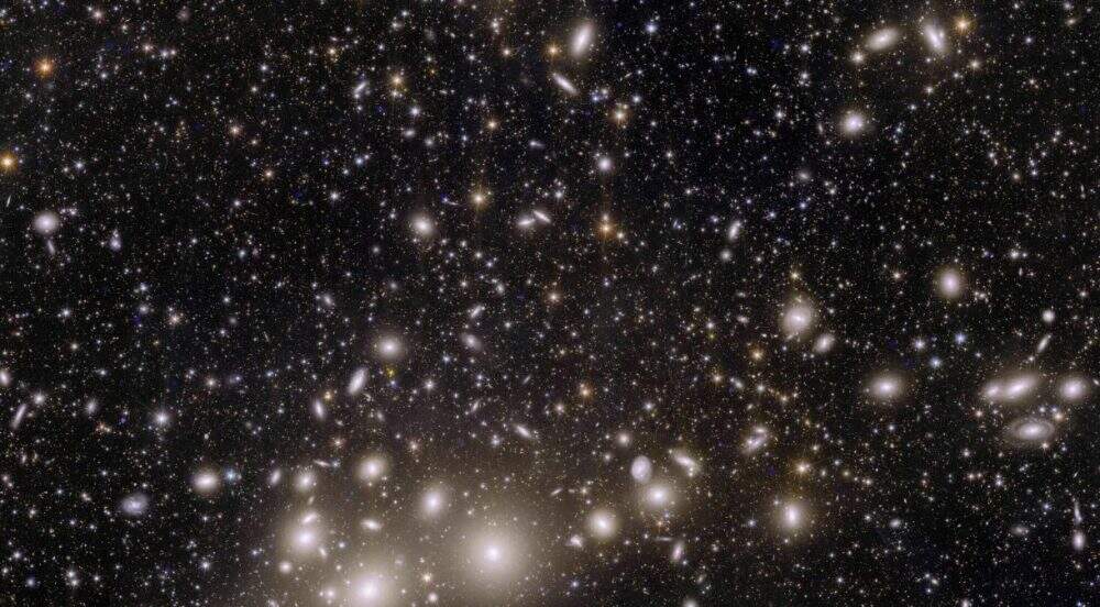 Uma das imagens reveladas apresenta cerca de mil galáxias pertencentes ao aglomerado Perseus. Ao fundo, é possível discernir mais de 100 mil outras galáxias, algumas das quais jamais haviam sido observadas anteriormente.