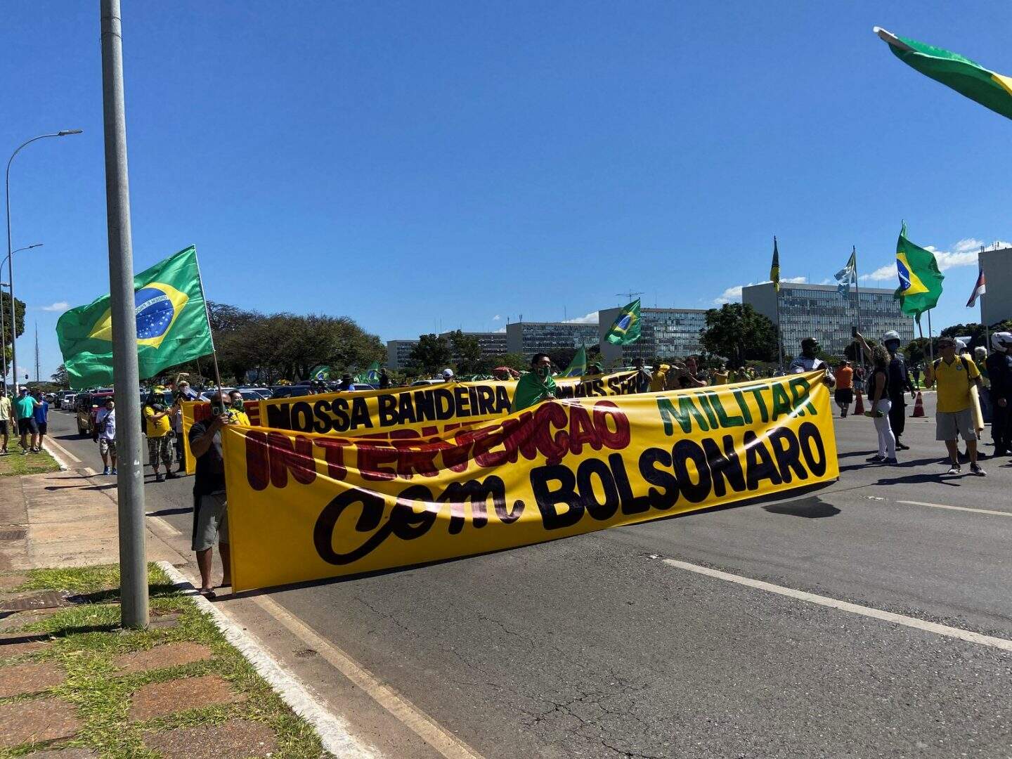 No ato, os manifestantes também voltaram a pedir intervenção militar no País sob o comando de Bolsonaro e criticaram o presidente da Câmara dos Deputados, Rodrigo Maia (DEM-RJ), ministros do STF (Supremo Tribunal Federal) e o ex-ministro da Justiça Sérgio Moro, que acusa o presidente de tentar interferir politicamente na PF (Polícia Federal) para proteger familiares.