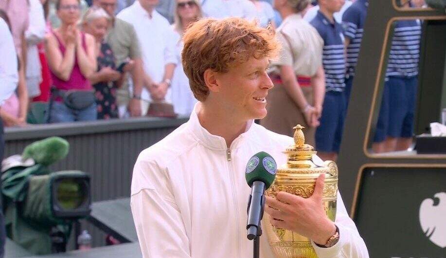 Primeiro italiano a vencer em Wimbledon, Sinner rasgou elogios ao adversário na cerimônia de premiação: “Foi um torneio incrível, mas obrigada por ser o jogador que você é. É sempre difícil jogar contra você, mas temos um relacionamento incrível fora de quadra, e dentro de quadra nós crescemos juntos. Você ainda vai segurar outras vezes esse troféu, mas você já tem dois (risos). É muito especial, ver meus pais aqui, meu irmão, minha equipe”.
