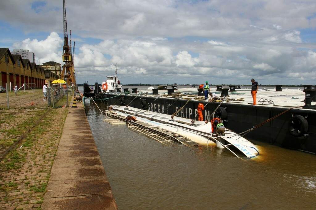 As ações para içar a embarcação, que é uma das atrações turísticas de Porto Alegre, começaram na manhã de domingo. Os prejuízos causados pelo incidente só poderão ser avaliados após a conclusão do trabalho. O Cisne Branco virou durante a forte tempestade que atingiu a capital gaúcha na noite de sexta-feira.