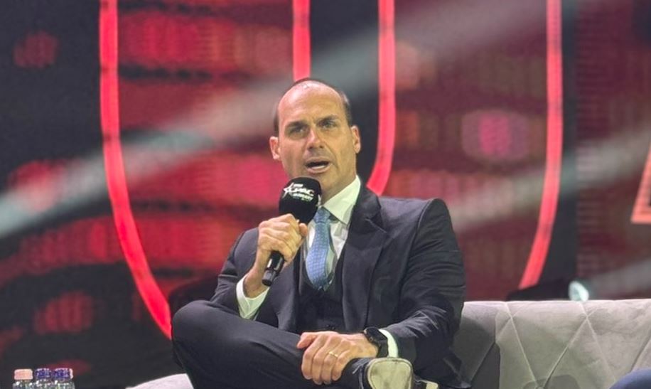 Eduardo tem guiado Flávio em viagens internacionais para construir uma articulação estrangeira de extrema direita. O senador é pré-candidato pelo PL à Presidência e vai se apresentar no evento neste sábado (28).