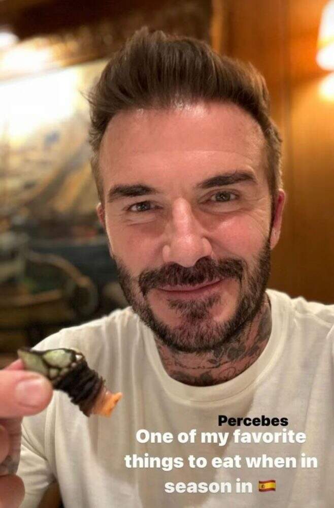 O ex-jogador de futebol David Beckham dividiu com seus seguidores a experiência de comer um crustáceo bastante raro em uma restaurante na Espanha. A iguaria, que tem cerca de 5 centímetros, é conhecida como percebes, um marisco que vive em rochas expostas e águas agitadas e frias.