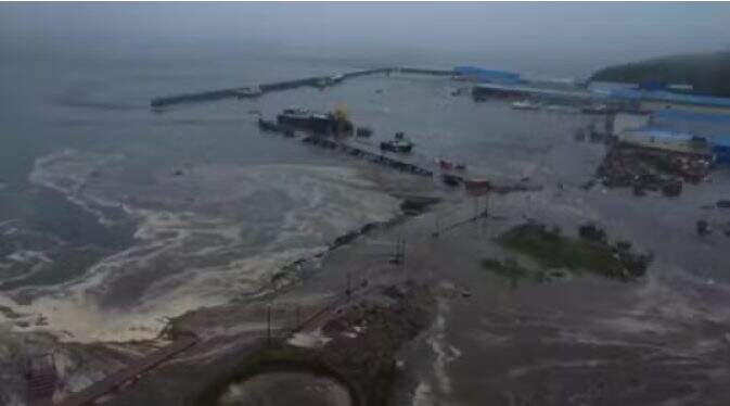 Na Rússia, ondas de 3 a 5 metros atingiram a Península de Kamchatka e as Ilhas Curilas. (Foto: Reprodução de vídeo)