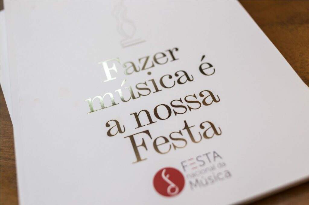 No detalhe: o slogan “Fazer música é a nossa festa” estampa a revista da Festa Nacional da Música 2016. (Foto: Pedro Antonio Heinrich/especial)