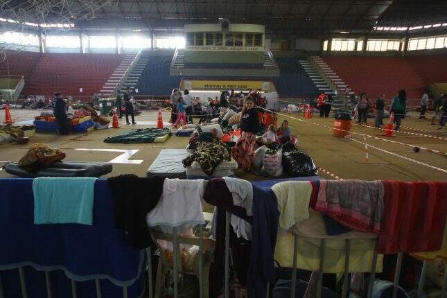 Porto Alegre, 12/10/2015 – Mais de 200 famílias da Ilha Grande dos Marinheiros estão abrigados no Ginásio Tesourinha, devido aos alagamentos provocados pelas fortes chuvas. O local também é ponto de coleta de doações para as famílias atingidas pelas enchentes. FOTO: LUCAS UEBEL