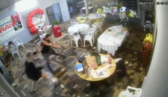 Uma câmera de segurança registrou o crime. Nas imagens, é possível ver uma mulher tentando evitar que o policial penal efetuasse os disparos, mas ele consegue atingir o guarda municipal e, depois, também é alvejado. Ao cair no chão, é espancado por alguns homens que estavam na festa. Guaranho levou vários chutes e pisões na cabeça.