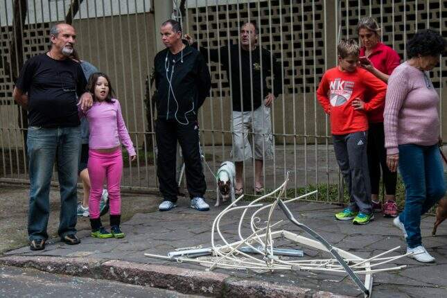 Porto Alegre 12.07.15 – Explosão do gás em prédio da Anita Garibaldi. Grade de porta voa com a explosão .Bobeiros evacum moradores do prédio – FOTO _ Jackson Ciceri