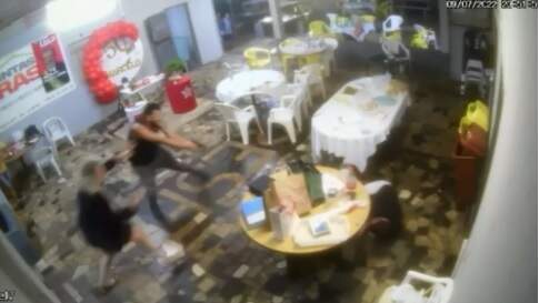 Câmera registra momento em que atirador invadiu festa e matou guarda municipal que era tesoureiro do PT, em Foz do Iguaçu.