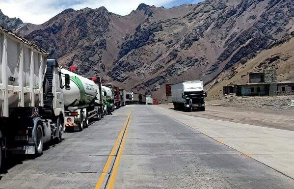 Entre 1,8 mil e 2 mil caminhões estão parados há dois dias na fronteira da Argentina com o Chile, formando longas filas do lado argentino do Paso Cristo Redentor, a principal ligação entre os dois países, na Cordilheira dos Andes.