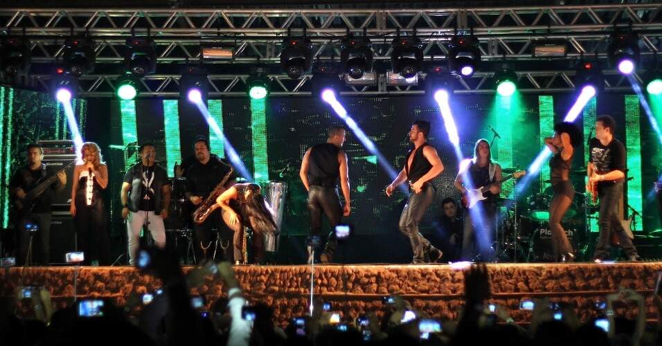 Joelma e Chimbinha preferiram manter a maior distância possível no palco durante apresentação em Teresina (PI). (foto: reprodução)