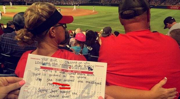 Duas irmãs que estavam em um jogo de beisebol em Atlanta, nos Estados Unidos, disseram ter flagrado uma mulher trocando mensagens de texto com seu suposto amante ao lado de seu marido, segundo o jornal New York Daily News.