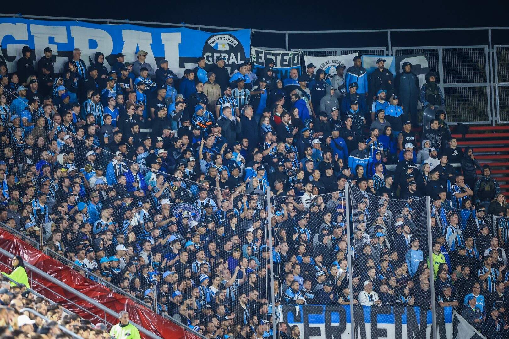 Foto: Lucas Uebel/GrêmioA vitória por 1 a 0 do Grêmio sobre o Estudiantes na noite desta terça-feira (23), pela terceira rodada da Libertadores, teve flagrantes de casos de racismo nas arquibancadas do time argentino. Nas redes sociais, torcedores do Grêmio registraram os rivais imitando macacos em direção aos tricolores que estavam em La Plata.