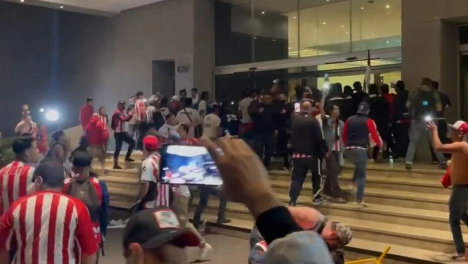 As justificativas parecem não ter sido aceitas e três mais esquentados queriam partir para a briga. Deixaram os demais ainda mais revoltados e, além dos tantos objetos atirados nos jogadores, ainda tentaram invadir o hotel. A segurança protegeu o time, que voltou para as dependências da concentração, mas uma porta de vidro foi estilhaçada enquanto o assustado grupo procurava se esconder.