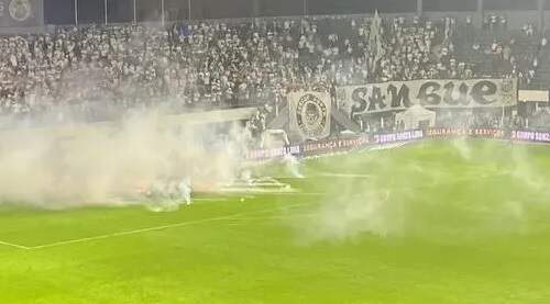 Foto: ReproduçãoO duelo, nesta quarta-feira (21), entre Santos e Corinthians, que acabou em vitória do Timão por 2 a 0, ficou marcado por um episódio lamentável aos 40 minutos do segundo tempo. Quando a partida já se desenhava para um triunfo tranquilo dos visitantes, a torcida santista passou a atirar rojões e sinalizadores no gramado.