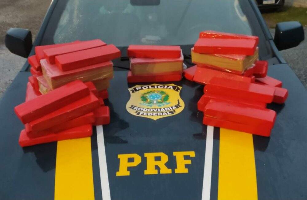 A PRF (Polícia Rodoviária Federal) prendeu, neste domingo (28), um traficante transportando 35 quilos de maconha em um carro. Ele foi abordado na BR-293 em Bagé, na Região da Campanha.