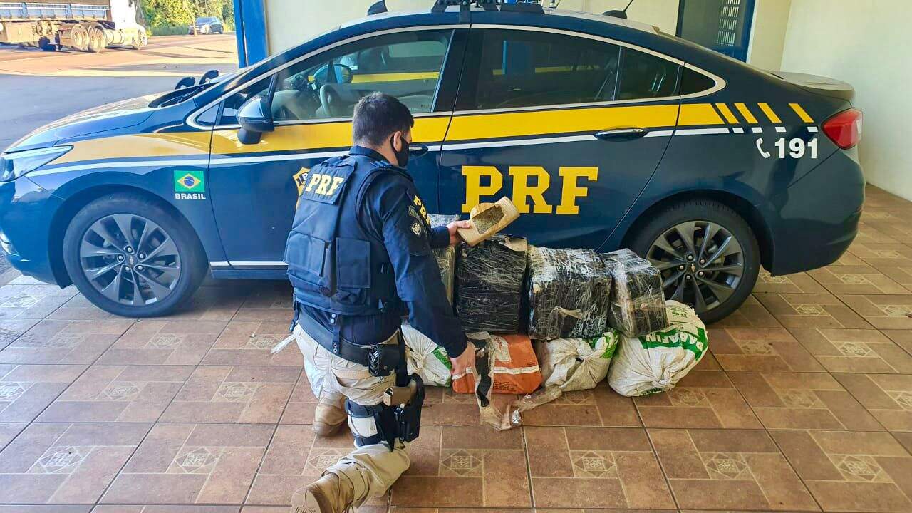A camioneta foi abordada e estava com o bagageiro carregado de dezenas de tabletes de maconha. A droga totalizou 190 quilos.