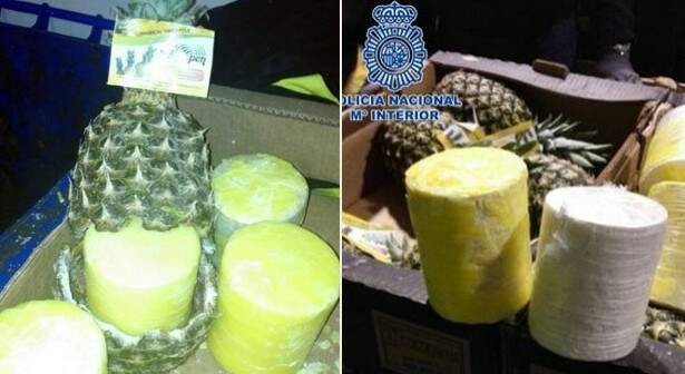 Entre as centenas de abacaxis frescos que estavam na carga, os agentes espanhóis encontraram algumas frutas que tinham sido recheadas com drogas e, em seguida, cobertas com uma cera amarela que simulava a cor da polpa do abacaxi.