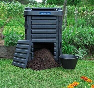 Dotada de um tubo de ventilação interno com furos e um estrado plástico vazado na base do produto, a Composteira Tramontina auxilia na transformação dos resíduos em um adubo rico em nutrientes. Permite uma boa aeração do resíduo, essencial para a compostagem. Os resíduos são incorporados pela tampa superior e o material já compostado pode ser retirado pelas tampas inferiores.
