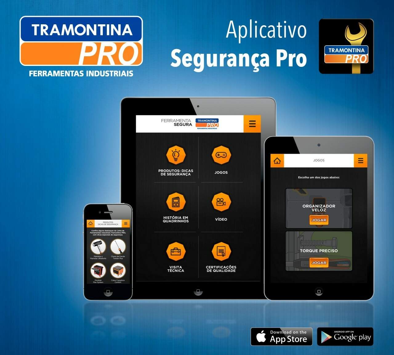 A Tramontina PRO lança seu primeiro aplicativo de segurança para tablets e smartphones. A novidade reúne dicas para o uso correto de ferramentas, inovações, jogos, vídeos, histórias em quadrinhos, certificados de qualidade e contato para visitas técnicas.