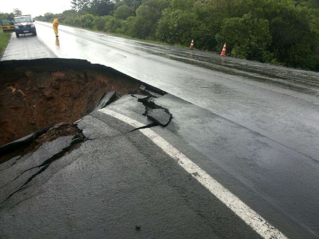 Parte do acostamento da via desmoronou. (Foto: PRF/Divulgação)