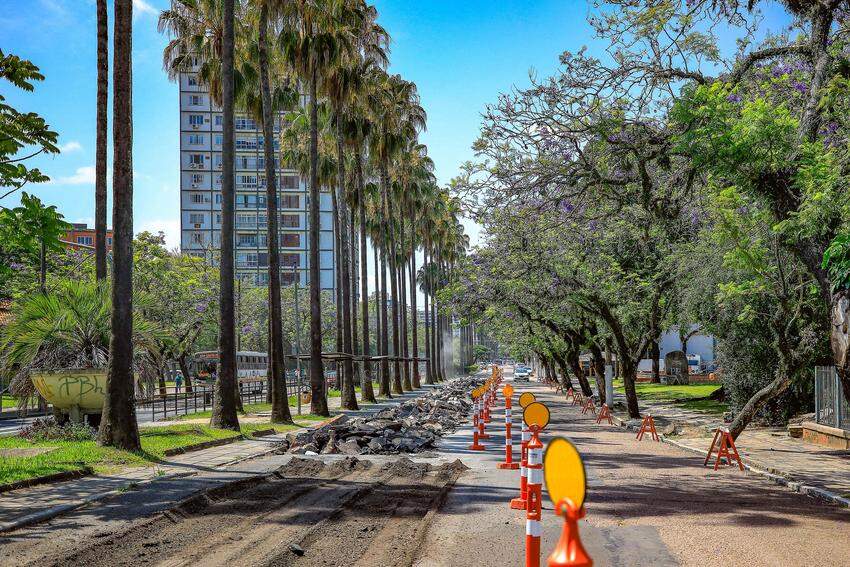 Foto: Alex Rocha/PMPAEm razão do andamento das obras de pavimentação do corredor de ônibus, a pista lateral esquerda da avenida João Pessoa, no bairro Azenha, em Porto Alegre, foi bloqueada para o trânsito de veículos, a partir desta quinta-feira (07), no trecho compreendido entre a rua Praça Piratini e a avenida da Azenha.