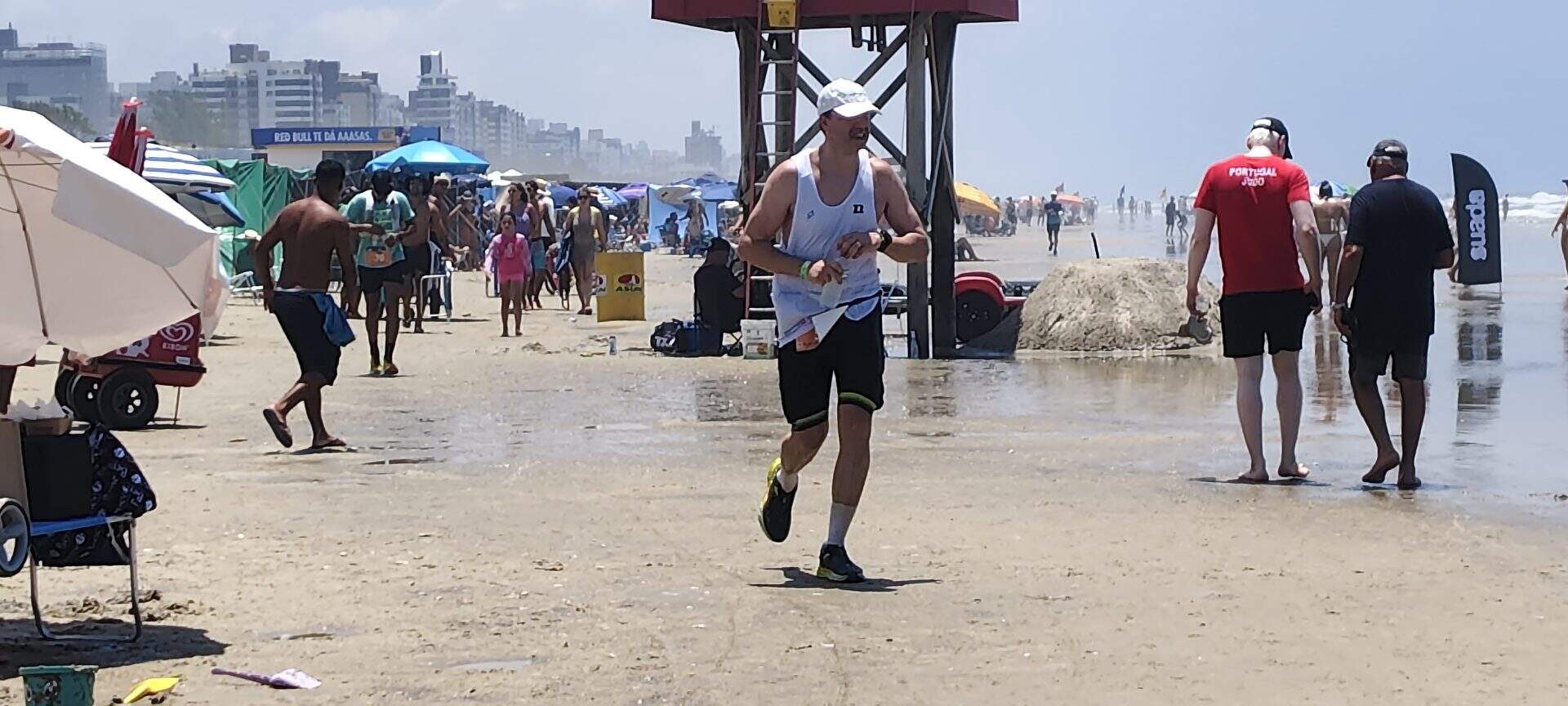 Atletas buscando a superação durante na Travessia Torres Tramandaí na beira mar.