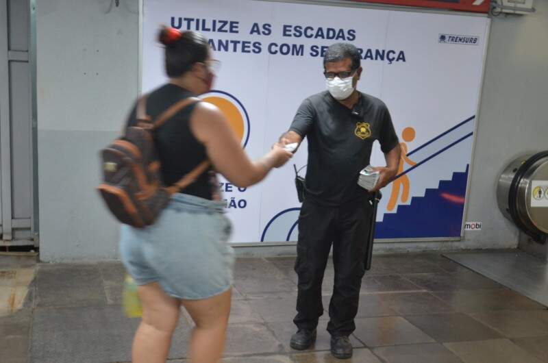 Agentes da segurança metroviária abordarão os usuários, na Estação Mercado, para entregar o guia e orientá-los sobre os cuidados no uso das escadas rolantes.