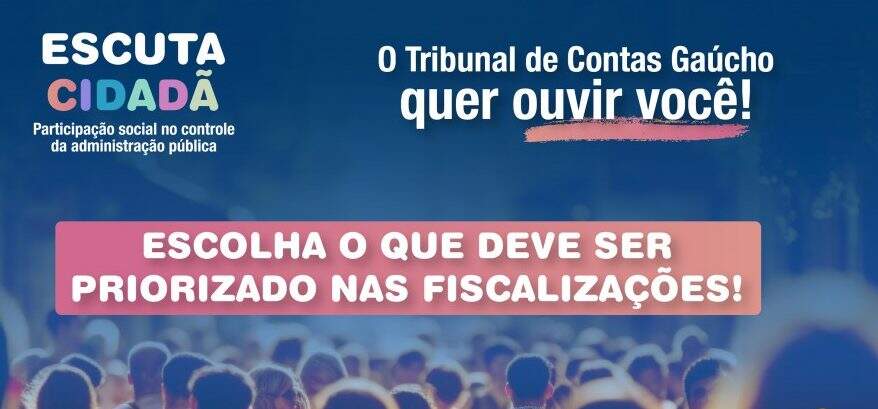 O TCE-RS (Tribunal de Contas do Estado do Rio Grande do Sul) lançou, na quinta-feira (16), a pesquisa do projeto Escuta Cidadã, uma iniciativa que visa ampliar a participação da sociedade nas ações de controle da administração pública. Por meio da consulta, a população poderá ajudar a definir as áreas prioritárias a serem fiscalizadas pelo TCE gaúcho. O governo do Estado é parceiro na divulgação da pesquisa, que ficará disponível até 10 de novembro.