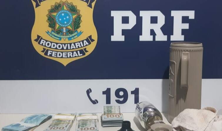 Foto: PRF/DivulgaçãoA PRF (Polícia Rodoviária Federal) apreendeu cerca de 30 mil dólares na BR-287, em Santiago, na Região Central do Rio Grande do Sul. O dinheiro estava escondido em um fundo falso de uma garrafa térmica.