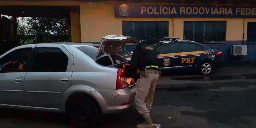 A droga foi encontrada no porta-malas de um Renault Logan ocupado por dois homens e uma mulher