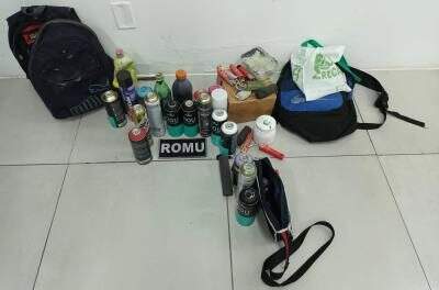 Os agentes constataram a veracidade dos fatos e apreenderam sprays de tinta, além de outros materiais para pichação com os indivíduos