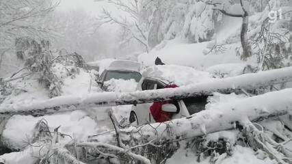 A nevasca, que começou na noite de terça-feira (04), continuou em intervalos regulares, atraindo milhares de turistas. Devido ao grande número de visitantes, muitas famílias acabaram ficando presas nas estradas.