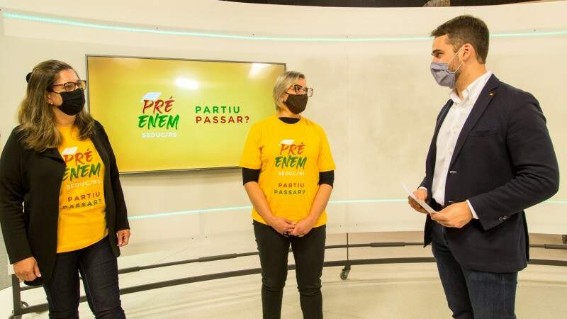 “A TVE cumpre um papel muito importante ao levar informação e, agora, também terá um papel muito importante na área da educação ao transmitir nosso Pré-Enem Seduc RS a partir de hoje. Beneficiará jovens de todo o Estado, que podem inclusive convidar a família para assistir e relembrar os conteúdos”, explicou o governador Eduardo Leite, em transmissão ao vivo pela internet nesta segunda-feira (18), diretamente dos estúdios da TVE, onde as aulas preparatórias são gravadas. Na ocasião, Leite conversou com as professoras Janaína Casanova, de Artes, e Kátia Luciane Souza da Rocha, de Matemática, que integram o grupo selecionado para o projeto.