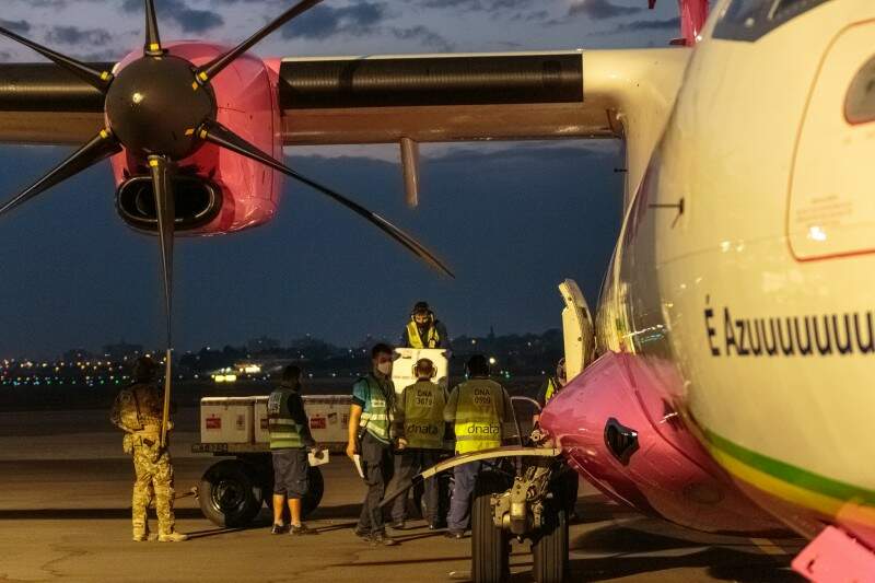 Foto: Gustavo Mansur/Palácio PiratiniUm novo lote de vacinas contra o coronavírus, enviado pelo Ministério da Saúde, chegou ao Rio Grande do Sul no início da manhã desta sexta-feira (16). A carga desembarcou no aeroporto Salgado Filho antes das 6h.