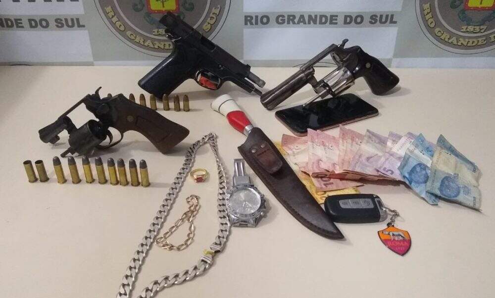 Acionada por vizinhos da vítima que ouviram os disparos, a BM (Brigada Militar) enviou uma viatura que saiu em perseguição aos criminosos. O carro utilizado na fuga acabou capotando em uma curva de estrada na zona rural da cidade e a dupla foi capturada em uma área de matagal, a aproximadamente 3 quilômetros do estabelecimento assaltado.