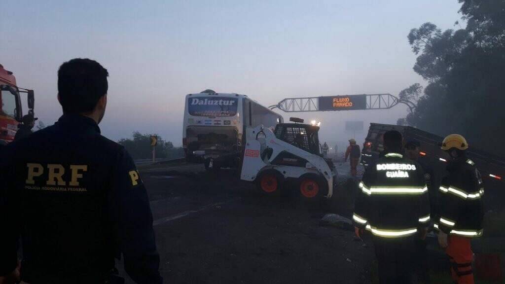 Conforme a PRF, a baixa visibilidade na rodovia ocasionada pela forte neblina contribuiu para as colisões. A vítima fatal estava em um caminhão com placas de Guaíba. O homem tem 25 anos. O engavetamento entre os veículos ocorreu no sentido interior-Capital, próximo ao trevo de acesso a Eldorado.