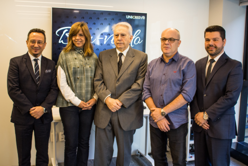 Arthur Bender e Claudia Aragón (Selling e Believe It!), Dr. Paulo Barcellos (Unicred), Nilton Santolin (fotógrafo) e Rodrigo Borges (Unicred)