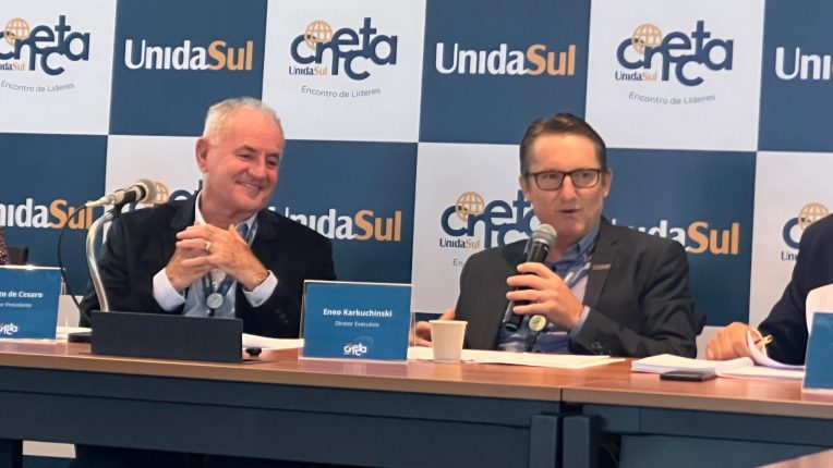 Ao microfone, novo presidente da UnidaSul, Eneo Karkucinski. (Foto: Reprodução)