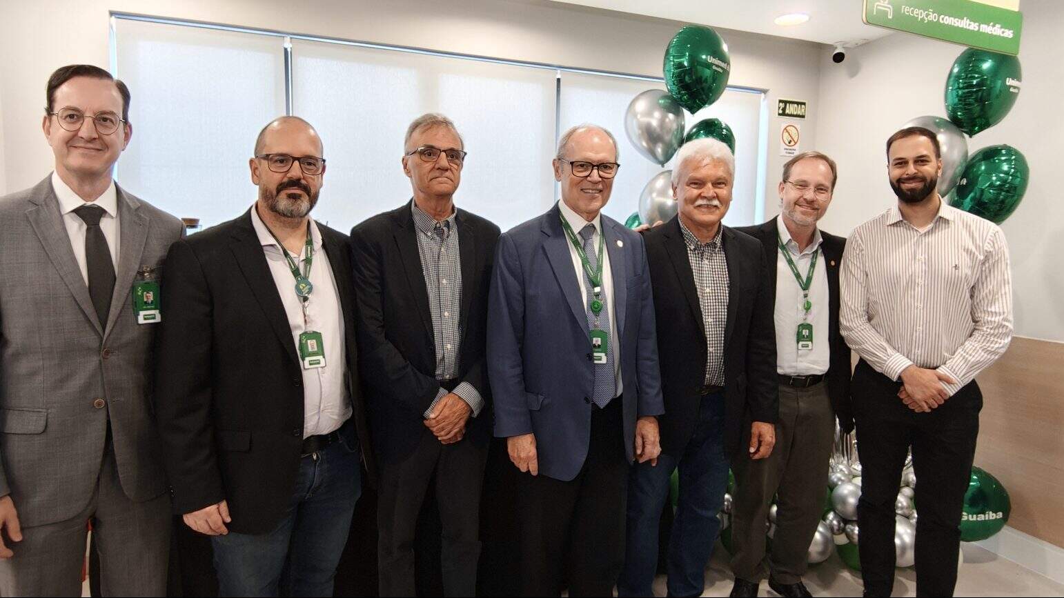 O presidente do Conselho de Administração de Porto Alegre, Marcio Pizzatto (ao centro de blazer azul) esteve acompanhado de dirigentes da Unimed Porto Alegre