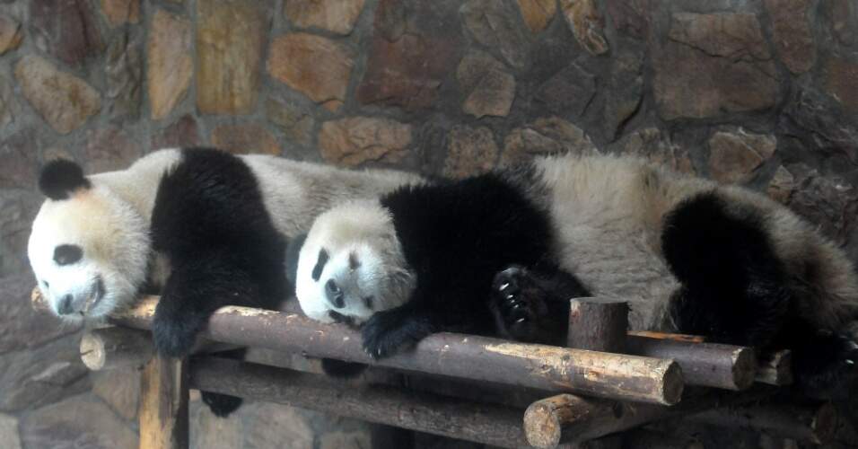 Os ursos pandas que vivem no Centro de Pesquisa em Reprodução de Pandas-gigantes de Chengdu, no sudoeste da China, foram colocados em salas com ar-condicionado para suportarem o calor de mais de 30°C que tem feito na região nos últimos dias.