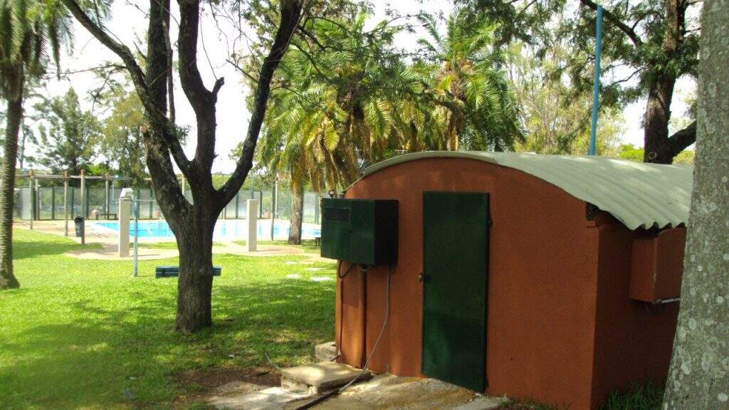 Outra piscina dentro do parque é privada, ou seja, está integrada a um condomínio de casas horizontal, para desfrute dos proprietários e inquilinos, em local igualmente privilegiado, cercado de área verde.