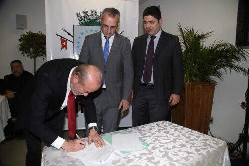 Assinatura de convênios para beneficiar o municípío nas questões de saneamento básico foram assinados entre Prefeitura de Santa Maria, Governo do Estado e Corsan. (Foto: Roni Riet, de Santa Maria/Especial/O Sul)