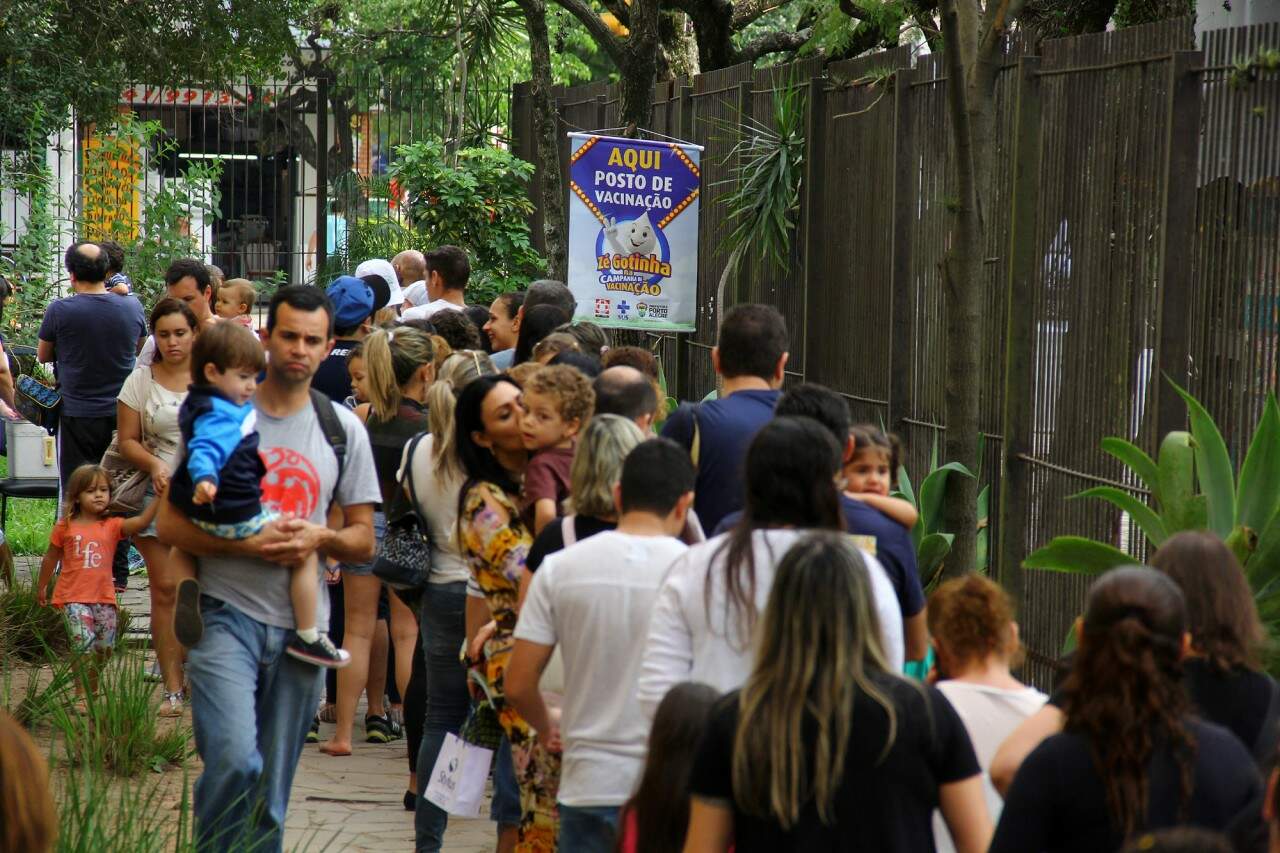 Porto Alegre, 15/08/2015 – Pais lotaram o Posto de Saúde Modelo neste sábado Dia de Mobilização contra a Paralisia Infantil e Multivacinação 2015. FOTO: LUCAS UEBEL