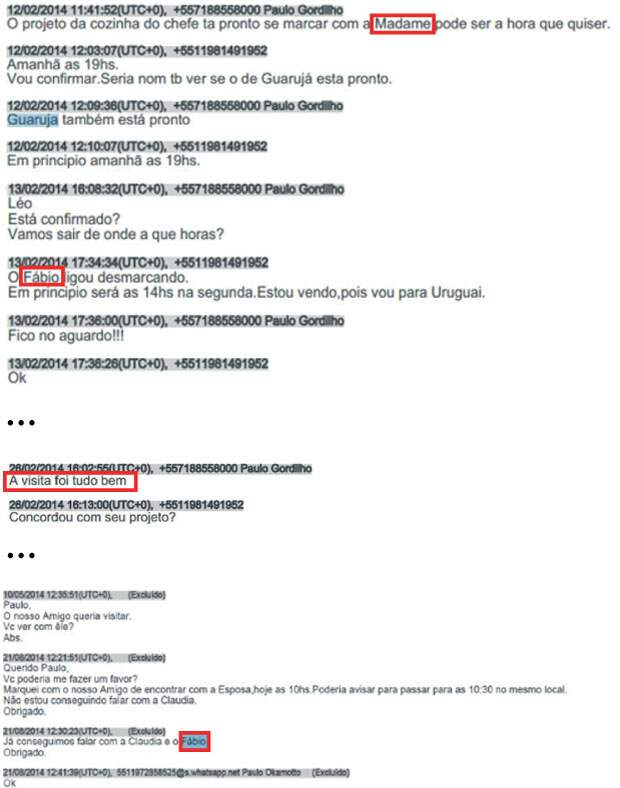 Em mensagens apreendidas no celular de Léo Pinheiro, o ex-presidente da OAS fala com interlocutores em 2014 sobre projetos de reforma para o tríplex. Há referências como “chefe”, “Fabio” (nome do filho de Lula) e “dama”. Em um dos diálogos, Paulo Gordilho, ex-diretor da OAS, diz que “a visita foi tudo bem”.