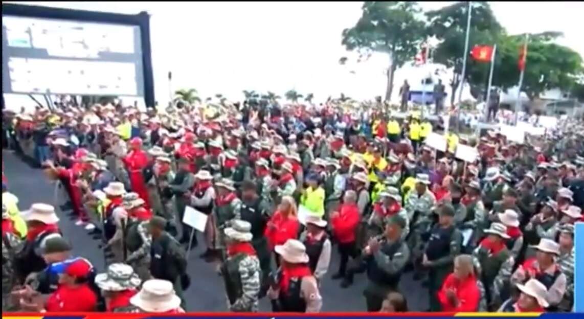 Foto: Reprodução de TVCentenas de venezuelanos compareceram, no sábado (23), a praças e quartéis do país em resposta ao chamado do ditador Nicolás Maduro para se alistar e contribuir com tarefas de segurança. O objetivo, segundo o chavista, é fortalecer a resposta diante de ameaças externas, em meio ao aumento da tensão com os Estados Unidos.