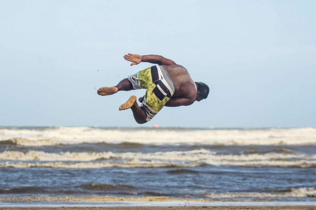 Depois do movimento intenso do final de semana devido ao feriado prolongado, a orla hoje (05) apresenta calmaria. Mesmo com sol intenso, o vento nordeste começa a soprar no litoral, o que afasta os veranistas da beira da praia. Alguns resistem ao vento enquanto outros optam por outro tipo de diversão. É o caso destes veranistas que se distraem nas areias de Tramandaí praticando a capoeaira, que também atrai curiosos.