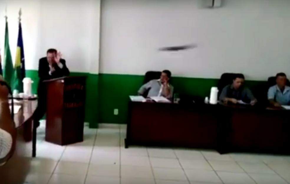 Um vereador do município de Buritis (RO) jogou um microfone contra um colega que falava na tribuna durante sessão da Câmara Municipal na segunda-feira (17). O vereador Adalton César (PR) arremessou o objeto em José Borges (PMDB) após ser chamado de “covarde”.